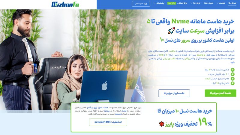شرکت میزبان فا (MizbanFa)، با نام رسمی شرکت دادهپردازان فهیم شاهینشهر، یکی از برجستهترین ارائهدهندگان خدمات میزبانی وب در ایران است که در آبانماه ۱۳۹۲ (نوامبر ۲۰۱۳) با شماره ثبت ۵۱۱۶۷ در استان اصفهان تأسیس شد. این شرکت با تمرکز بر کیفیت بالا، مالکیت کامل زیرساختهای سرور (مانند سرورهای نسل ۱۰ HPE با پردازندههای Xeon Gold و حافظههای NVMe)، و ارائه سرویسهایی نظیر هاست وردپرس، هاست ووکامرس، هاست ابری، سرور مجازی و ثبت دامنههای ملی و بینالمللی، توانسته بیش از ۱۰ هزار سایت ایرانی را میزبانی کند و رضایت ۹۷ درصدی مشتریان را جلب نماید. میزبان فا با پشتیبانی ۲۴ ساعته، ضمانت بازگشت وجه ۷ روزه بدون قید و شرط، و عدم وابستگی به نوسانات ارزی در قیمتگذاری، به عنوان یکی از باکیفیتترین هاستینگهای کشور شناخته میشود و مشتریان معروفی مانند فروشگاه اینترنتی الجی و مجموعه شهر خودرو را در کارنامه دارد.